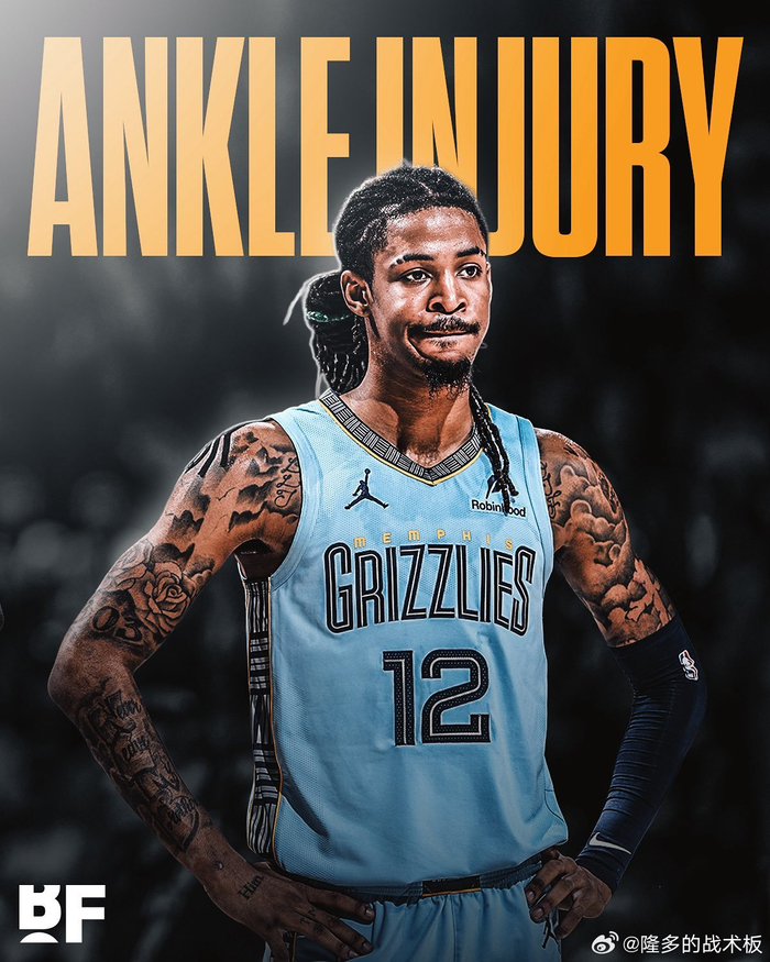 灰熊队的头牌后卫莫兰特在昨天训练中不慎扭伤了左脚踝。目前球队表示会每周观察他的恢复情况,具体伤势和复出时间尚未明确。